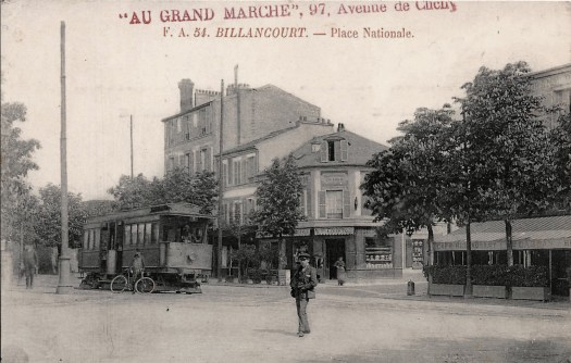 A une époque où les rues sont désertes, où le métro est confiné à Paris intra-muros et où les omnibus, tirés par des chevaux, sont lents, le tramway est un bon moyen de se déplacer à Billancourt.