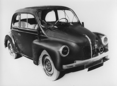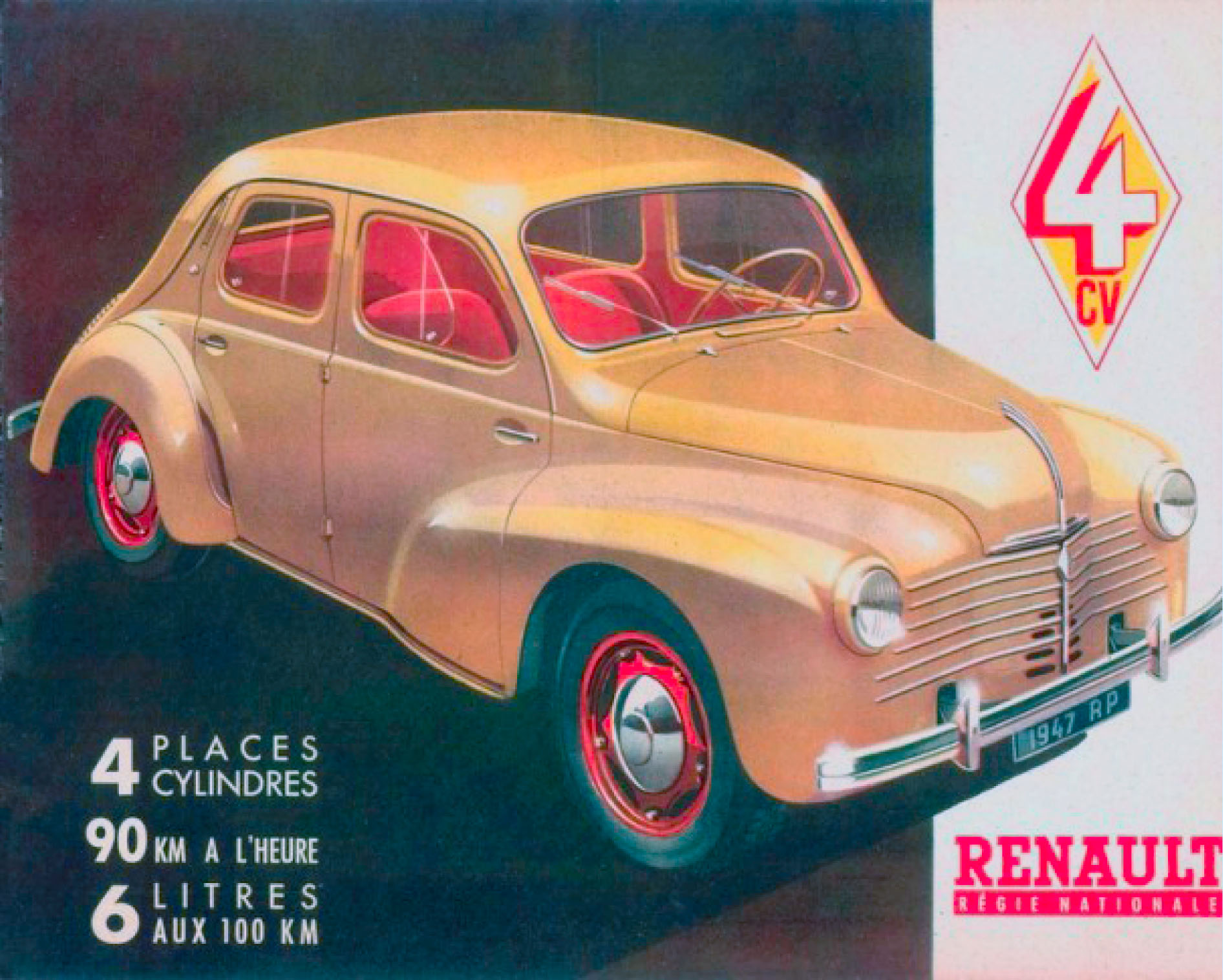 1945 : Louis Renault est mort, l’entreprise devient une régie. Son PDG, Pierre Lefaucheux, est d’emblée enthousiaste pour le projet de petite voiture économique et choisit celui de la 4CV plutôt que celui de la 11CV qui attendra des jours meilleurs. Il en fait une 4 portes et réussit à l’imposer dans un contexte politique pourtant défavorable.