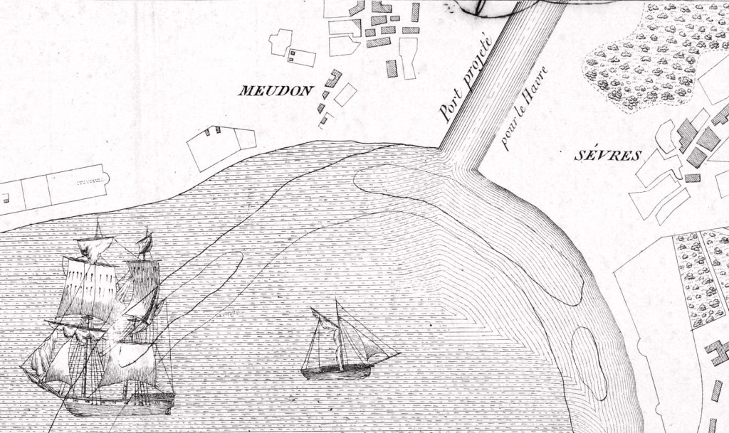 Mais le grand miracle est en haut à droite : Un canal vers le Havre gravit hardiment le coteau de Meudon, haut de 150 mètres !