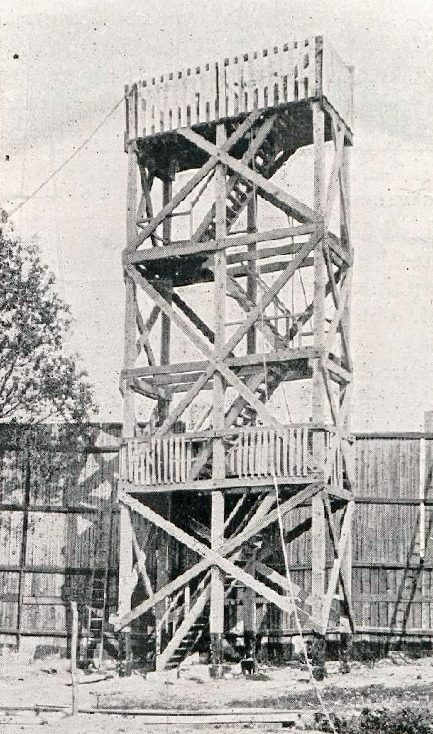 Mais la grande innovation est la tour qui permet le lancer de la cible en hauteur, vers le tireur, reproduisant autant que se peut le tir « en réel », c’est à dire en battue.
