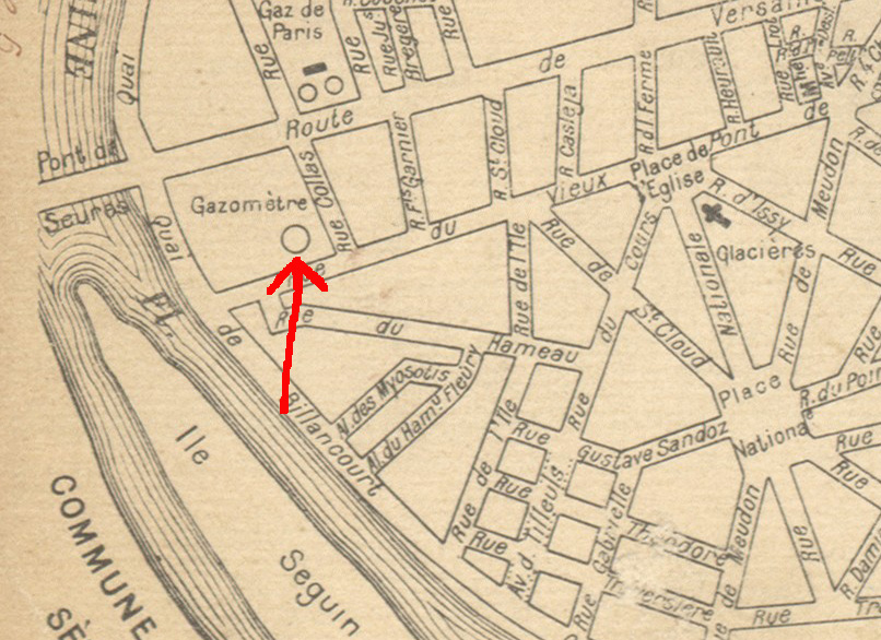 Voila en effet un bien étrange édifice ! Implanté au début du 20ème siècle près du pont de Sèvres, rue Collas aujourd’hui disparue, et d’une surface au sol estimée à 160 m2, sa hauteur devait avoisiner les 40 mètres. Bombardé durant la seconde guerre mondiale, il ne fut pas rebâti car jugé dépassé, inutile.