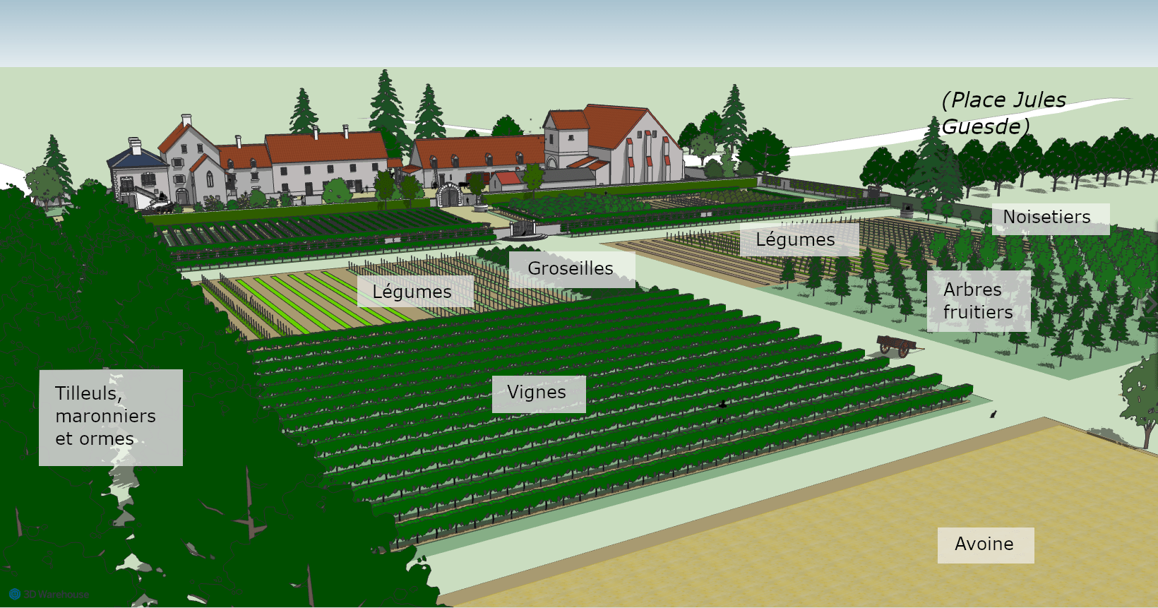 Malgré nos efforts, nous n’avons pas (encore) retrouvé de registres de comptes permettant de se donner une idée précise des volumes cultivés sur ses huit siècles d’existence, mais nous avons une bonne description des espèces.