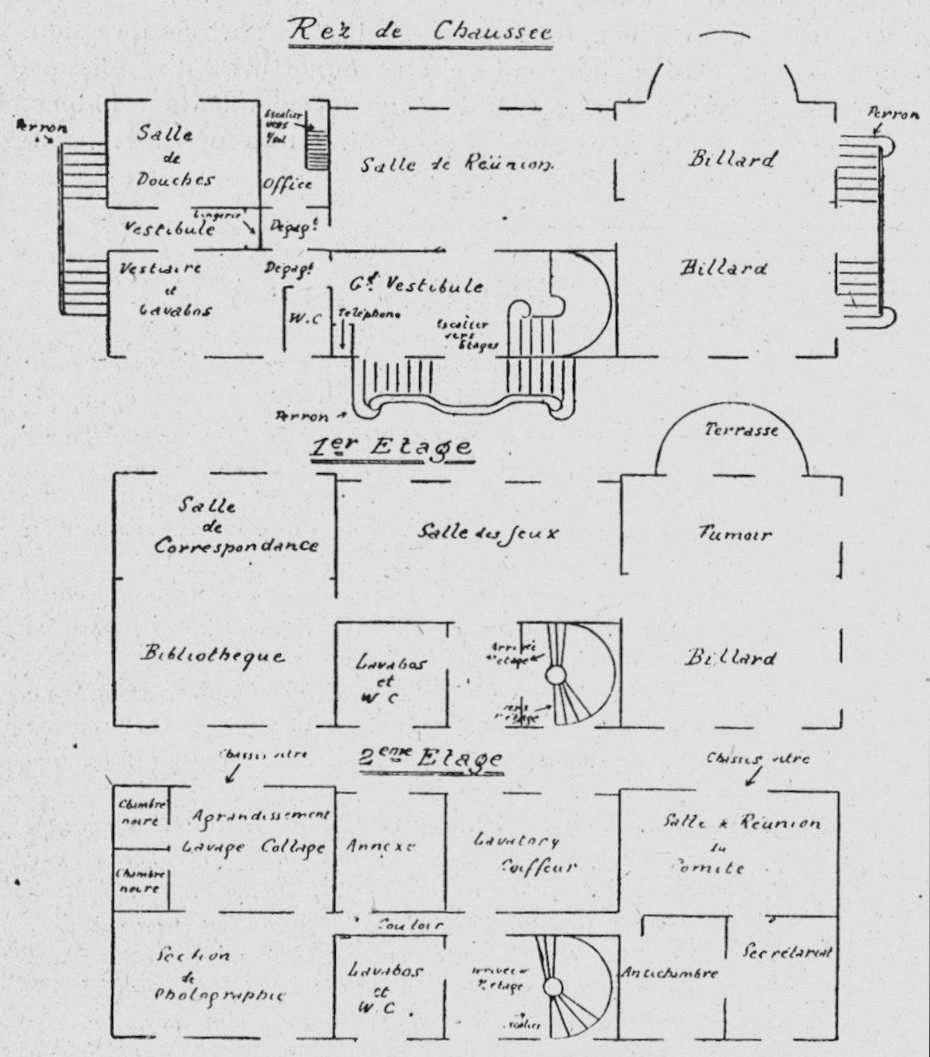 En 1919, Louis Renault installe dans la villa Fountaine son tout nouveau Cercle des Usines Renault créé le 29 octobre 1918. Le cercle a pour objectif de « permettre au personnel dirigeant de ses usines de se reposer, de se délasser en se divertissant, en dehors des heures de service ». Il en confie la présidence à M. Serre, chef du service des études. Le plan ci-dessous donne une idée des activités qui y sont proposées. À l’extérieur, les salariés peuvent jouer au tennis ou aux boules. Il y a également des garages pour autos et bicyclettes, une salle d’escrime, de boxe etc…