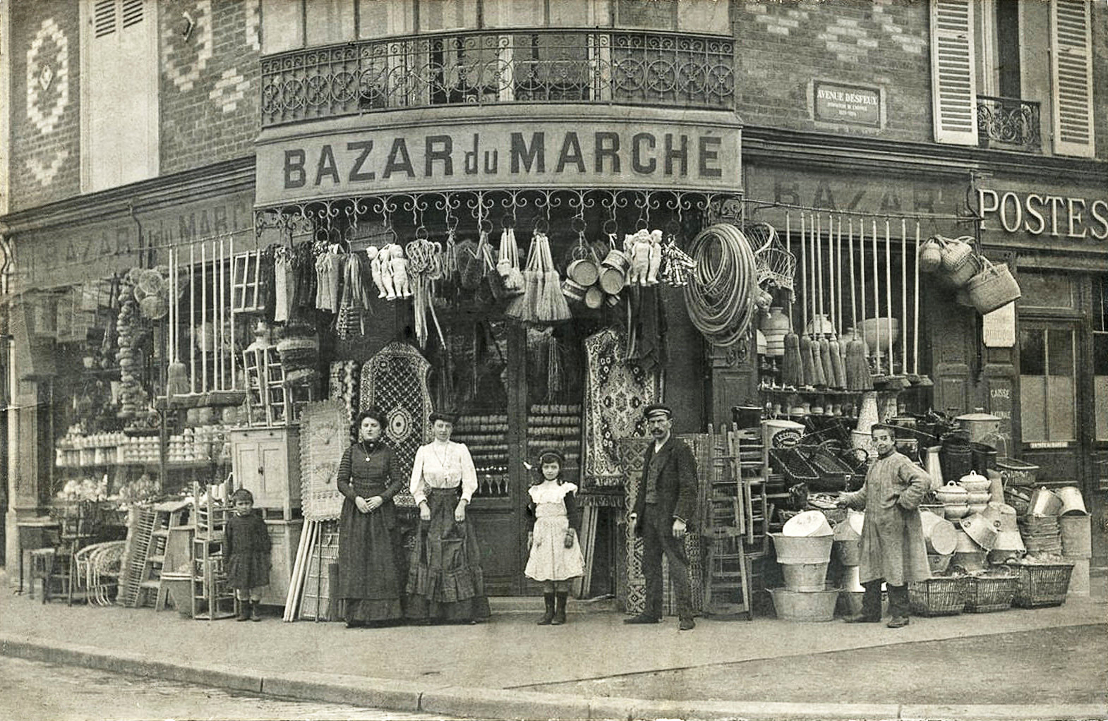 À l’angle de l’avenue Desfeux et la la petite rue Rouget de Lisle se tenait le « Bazar du Marché » qui, dans les années 20, possédait trois adresses autour du marché. Les affaires marchaient bien. Juste à côté, on a construit le premier bureau de poste de Billancourt.