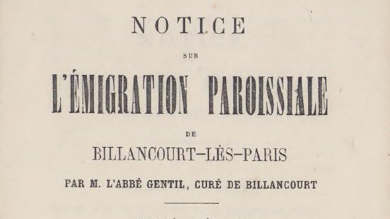 ² Réunis dans la Notice sur l’émigration paroissiale de Billancourt-lès-Paris – 2e édition