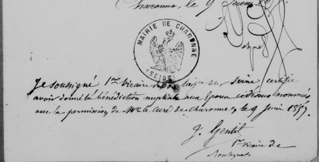 Sur l’acte de décès de sa mère, Marguerite Grandjean le 21 février 1877, il est l’un des témoins avec son frère Pierre Charles. Il en sera de même en 1878 à l’occasion du décès de Claude Gentil, son père, mort à Billancourt, au 4 rue de la Ferme.