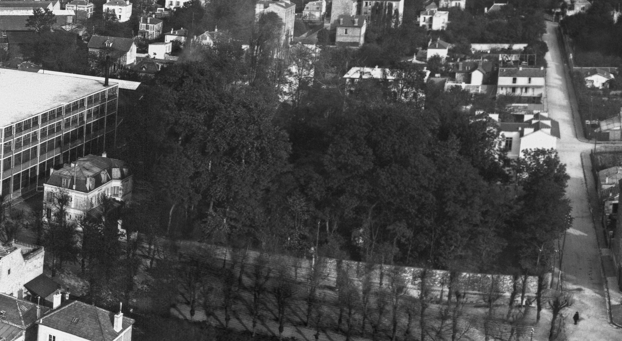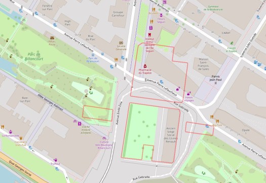 La propriété Renault est maintenant un grand parc noyé sous les arbres. Pour vous donner un repère, c’est aujourd’hui le terrain où est situé le bâtiment Dreyfus, ce grand bâtiment de brique jaune au bout du parc de Billancourt (voir notre article).