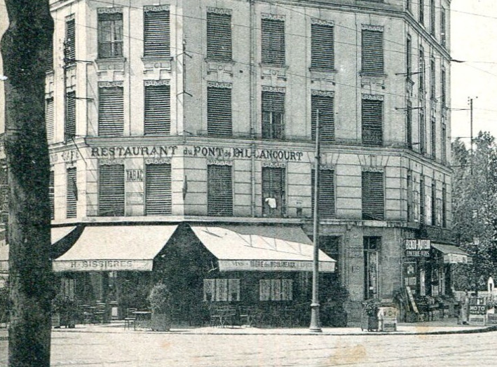 Revenons au restaurant. En 1901, le restaurateur s’appelle Hippolyte Bissières et on y sert de la bière des Moulineaux. En 1924 il est débitant de tabac. Un jeune manœuvre se suicide en 1933, dans une cabine téléphonique de ce café. En 1934 s’installe un bureau de PMU tenu par un certain Joulié.