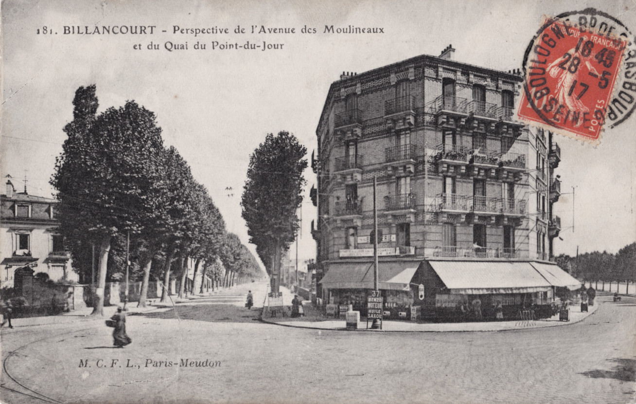 Nous avons retrouvé le propriétaire de l’immeuble : il s’appelle Georges Moreau. Cet ancien épicier parisien ne nous est pas inconnu car, au fil des années il se rendra propriétaire de nombreuses autres propriétés dans tout Billancourt. Profitant de sa position de conseiller municipal, il sera l’un des principaux opposants à Louis Renault lorsque celui-ci cherchera à s’étendre. Négociateur inflexible, Moreau parviendra à vendre à bon prix à l’industriel ses cinq propriétés de la rue traversière et de la rue de Meudon, avec en prime « une voiture 12cv carrosserie conduite intérieure complète, selon le catalogue, plus le compteur » (voir « Le jour où Renault ferma le trapèze« ).