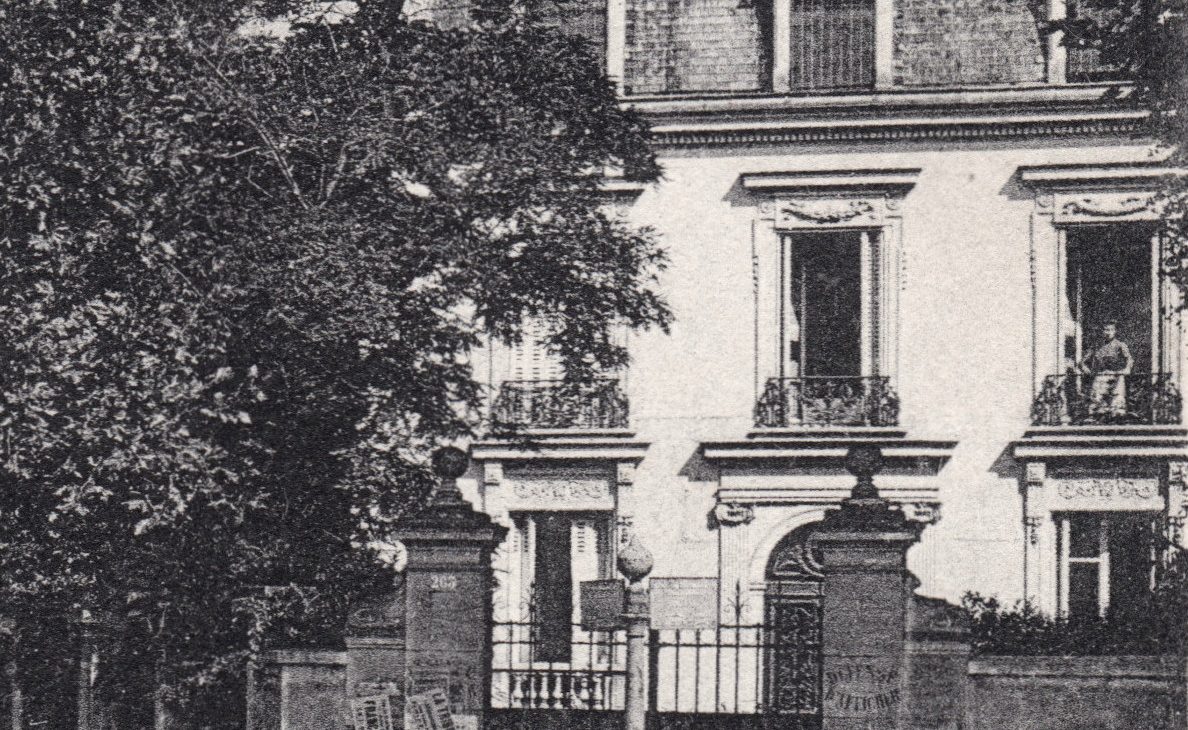Terminons notre tour de la place. À l’angle du boulevard de Strasbourg (Jean-Jaurès) et de l’avenue des Moulineaux (Pierre Grenier), se tient la seule maison individuelle. C’est aussi la plus ancienne habitation de la place puisqu’elle apparait dès 1872. Cette maison blanche à toiture mansardée comprend un grand jardin et des serres. Elle s’ouvre sur la place par un grand portail en fer noir.